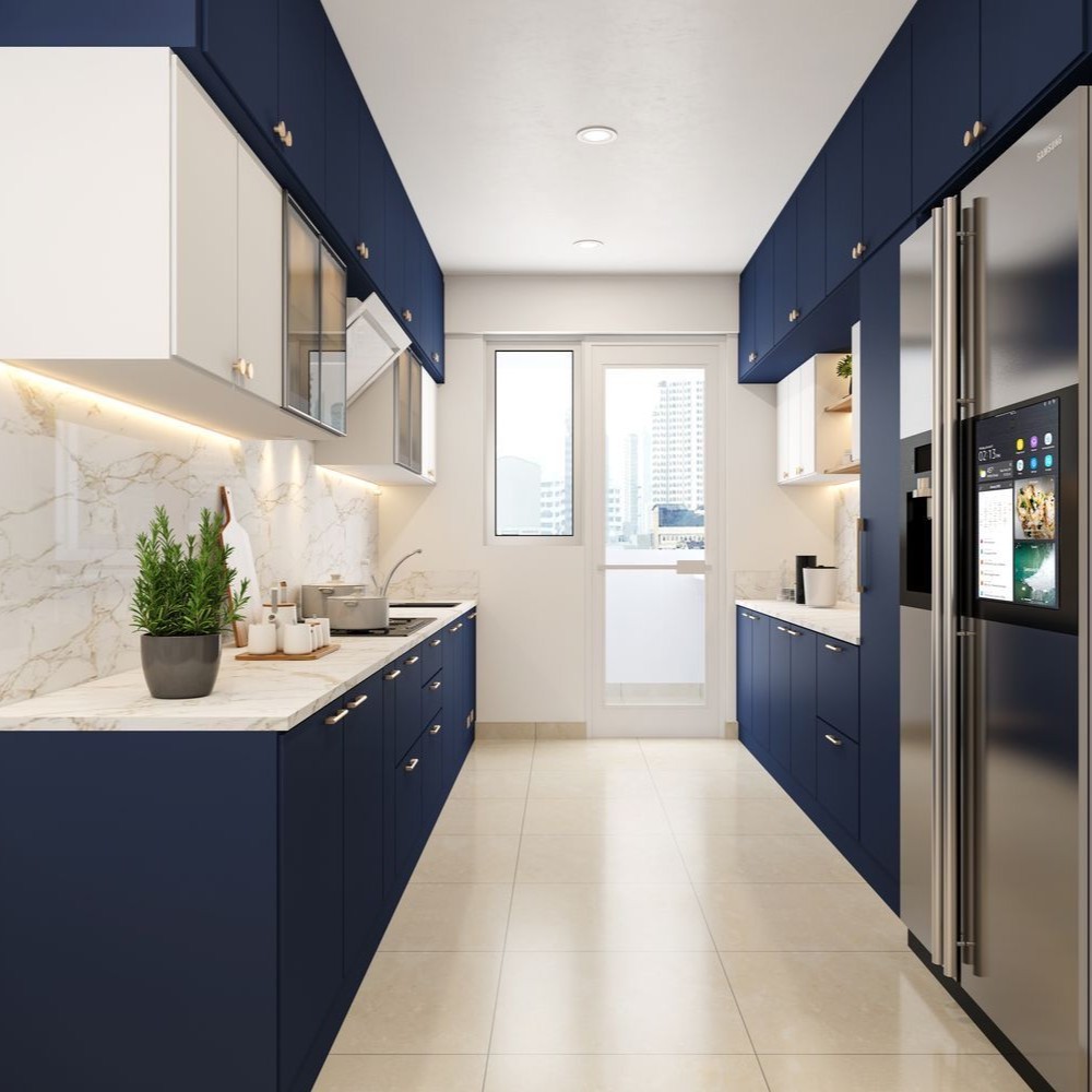 The parallel modular kitchen, also known as a galley kitchen, features two parallel countertops with a central passageway. This arrangement supports an organized workflow where cooking and cleaning zones are naturally separated, and everything is within easy reach. Perfect for narrow rooms, this design offers ample storage and counter space, letting you keep your work areas neat and functional. It’s a favored option for those who want efficient movement and ample space for two or more cooks working at the same time.